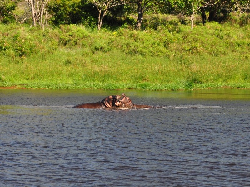 Hier findet keine Beißerei statt, die Flusspferdmama spielt mit ihrem "Kleinen"!