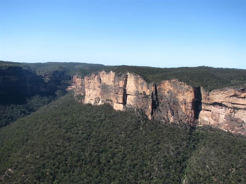 | Die Blue Mountains heißen nicht übrigens nur so, sie sind auch wirklich blau! Der Grund: die unzähligen Eukalyptus-Bäume sondern permanent Eukalyptus-Öl ab. Durch diesen ultra-feinen, öligen Dunst schimmert der Wald aus der Entfernung tatsächlich schön blau!! |