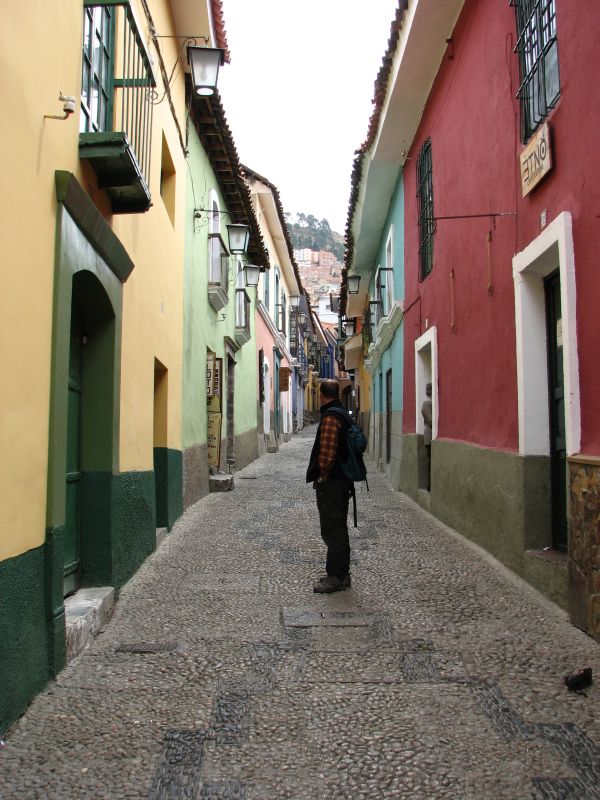 Wenn man von Norden nach La Paz hineinfährt, hat man einen überwältigenden Blick in den riesigen Talkessel, an dessen steilen Hängen auf jedem freien Fleckchen unzählige Häuser aller Art, von der Bretterhütte bis zur luxuriösen Hazienda, kleben.
