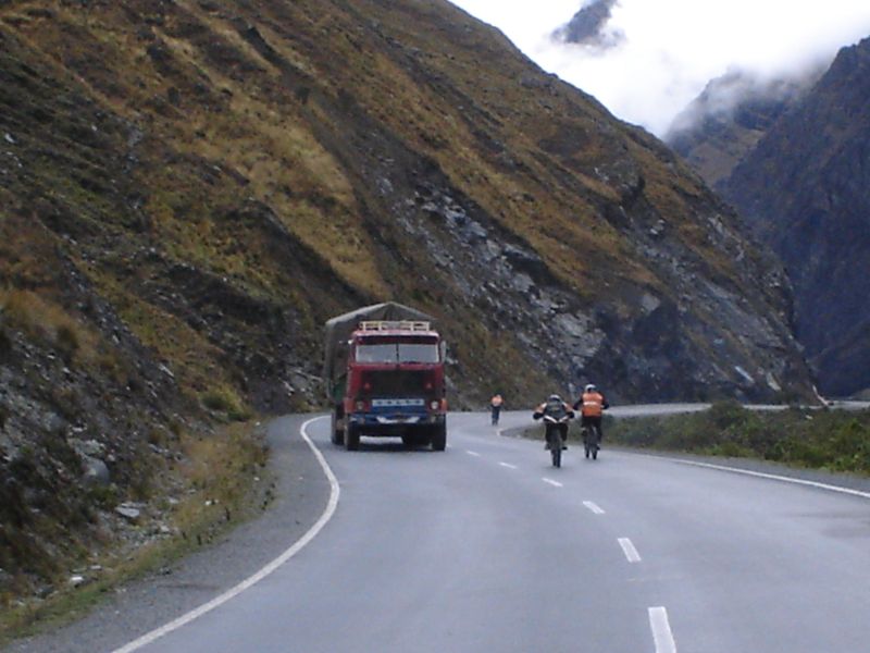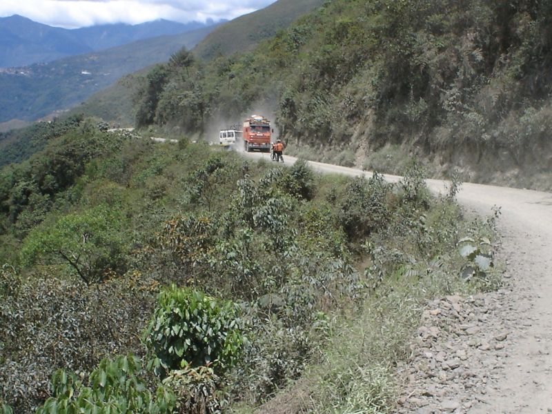 Wir waren uns aber sehr schnell einig, dass nicht die Straße an sich gefährlich ist, sondern die ganzen Irren, die darauf fahren... egal, ob diese mit Lkw, Bus, Taxi, Fahrrad oder Eselkarren unterwegs sind! Es scheint für einen Bolivianer absolut keinen vernünftigen Grund zu geben, warum man vor einer Kuppe in der Kurve nicht noch schnell überholen soll oder warum man vor Kurven gar die Geschwindigkeit drosseln soll!!!