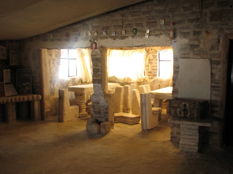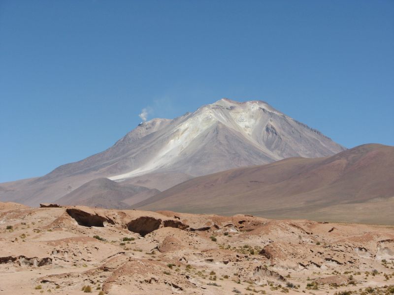 Die Salzkruste ist so hart, dass aus geschnittenen Salzblöcken bewohnbare Häuser gebaut werden! | In der Nähe: der aktive Vulkan Ollagüe | |||
