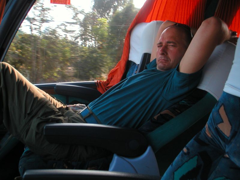 | Zwischen den größeren Städten gibt es zwar recht zuverlässige Flugverbindungen, aber meistens ist der Bus die einzige Möglichkeit, um von A nach B zu kommen! Es ist vollkommen üblich, mal eben 3 - 5 Stunden mit dem Bus zu einer Sehenswürdigkeit oder dem Startpunkt eines Treks zu fahren. Die großen Überlandbusse der Touristenunternehmen sind zwar super-bequem und es wird auch immer was leckeres zu essen serviert - aber ich habe ein echtes Problem mit dem Busfahren!! Schon als Kind konnte ich Autofahrten nicht vertragen, jetzt ist es immer noch so, dass ich bei einer Bustour die meiste Zeit ziemlich grün im Gesicht bin... | ![]() |