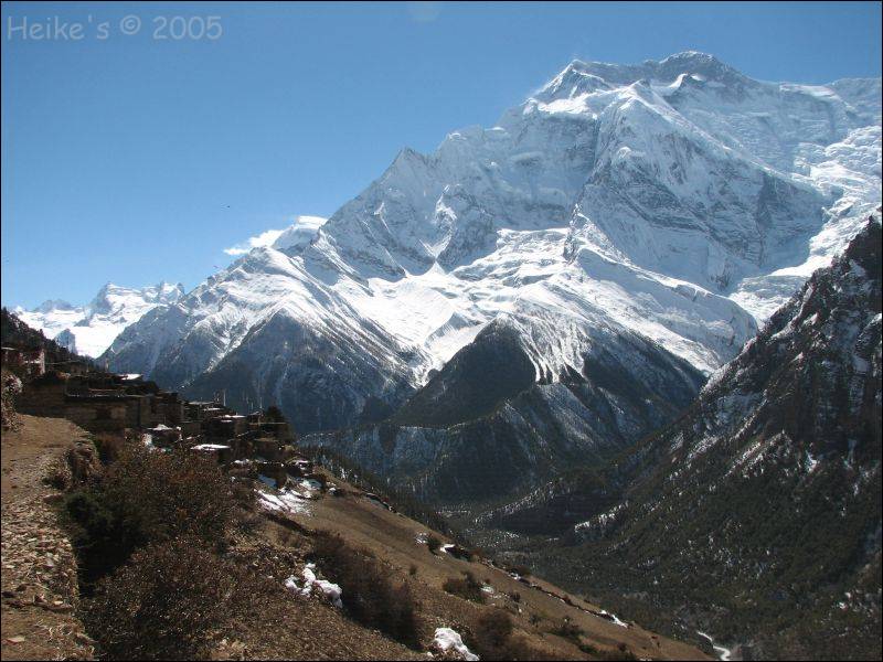 Ngawal klebt wie ein Schwalbennest ganz oben am Berghang. Der Aufstieg dorthin ist eine elende Schinderei, aber der Ausblick auf Annapurna II ,Annapurna IV und Gangapurna entschädigt für alles!