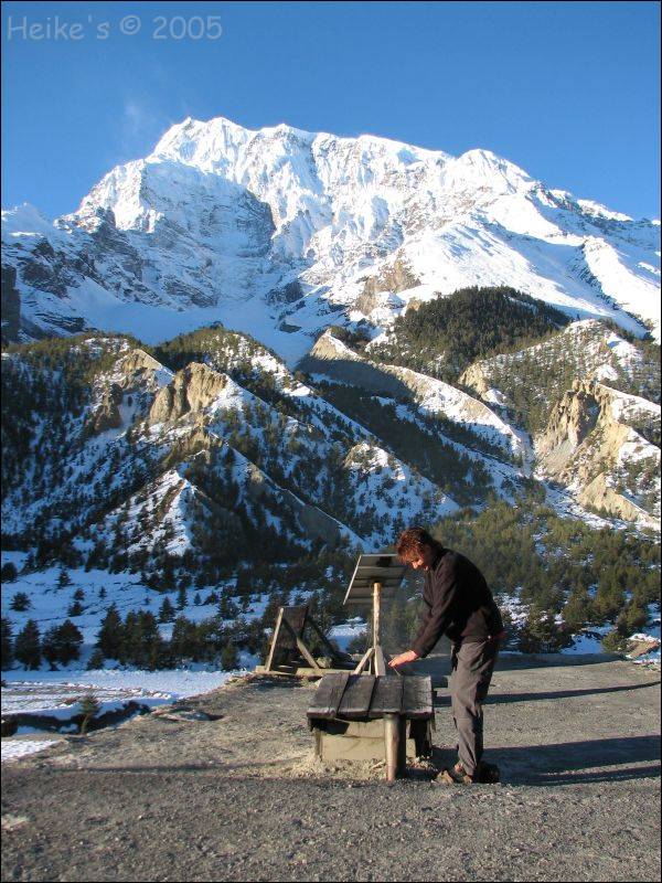 Hinter Manang wird es endlich interessant! Der Track ist steil, wir kommen nur langsam voran, die Tagesetappen werden kürzer, die Pausen länger. Die Höhe macht uns zu schaffen, aber dank Dipendras Dauer-Anweisungen und seiner "Knoblauch-Therapie" bleiben wir von der gefürchteten Höhenkrankheit verschont!